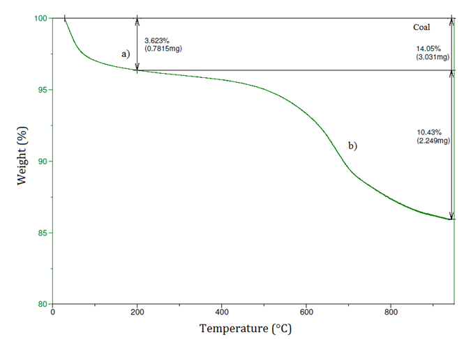 The coal sample shows a 14% loss in weight [Figure 10]. In addition, there are not many changes in this sample.