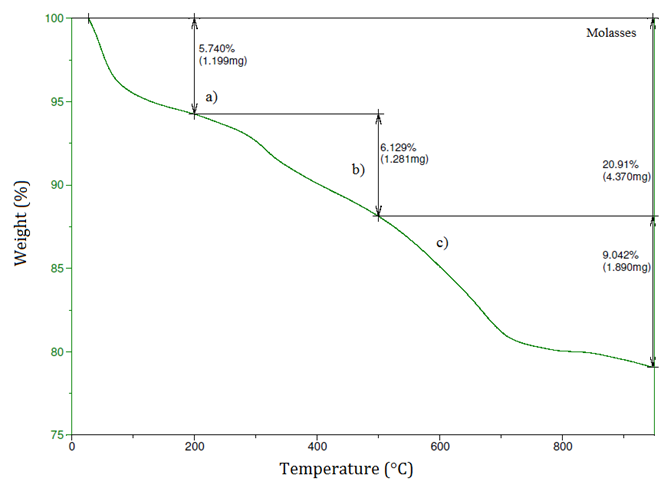 The information obtained by TGA shows that the molasses can be used as a reducing agent. This material generates good reduction results.