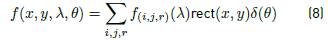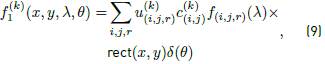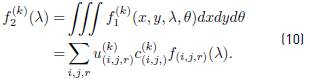 and the continuous model for the spectral density through the coded aperture, the polarization filter array and the optics before it impinges the sensor array is given by Equation (10)