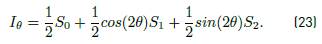 The relationship between the intensity of the light passing through a θ° linear polarizer Iθ and the Stokes parameters S0 to S2, of the original light, is linear and given by the following Equation (23)