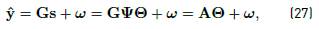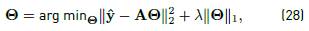 where A is the composite sensing matrix that modules the system. The signal recovery is obtained by solving the inverse problem of the under determined linear system in (27). This consists in recovering Θ such that the l1 - l2 cost function is minimized [14,18]. The optimization problem is given Equation (28) as