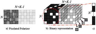 Where represents the binary value (white translucent or block). Designing an array of polarizers that changes at each acquisition is expensive [9], this paper proposes designing one with dimensions