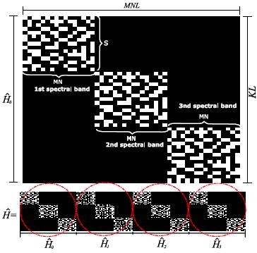 Because all spectral bands are encoded with the same coded aperture pattern, in Equation (18) the problem can be seen in a vector way as