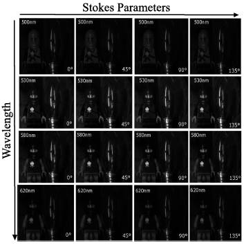 The acquisition of spectral images allows obtaining information from different ranges of the electromagnetic spectrum of a scene. The information can be represented as a data cube composed of different images at a specific wavelength, where each spectral band, provides information about the physical properties and distributions of materials in the scene [1]. On the other hand, one of the physical quantities associated with nature is polarization [2]. It measures information about the vector nature of the optical field in the scene, which allows knowing properties of the object surface such as roughness, shape, shading and orientation [3,4].