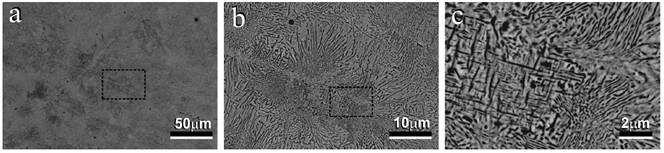 Figure 5 shows the eutectoid Au in detail. The precipitation of the acicular ferrite from (Au), is observed in Figure 5d [4-5].