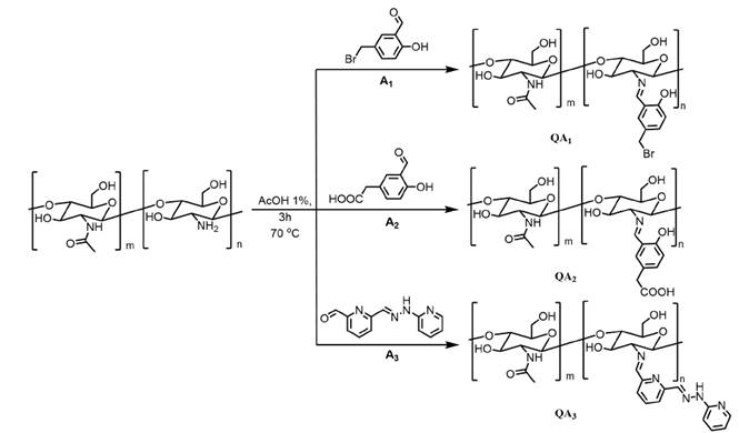 2.5 Synthesis of imine-chitosan derivatives, QA1-QA3