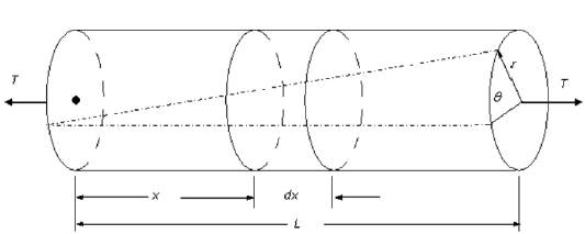It is important to highlight that by considerations of symmetry, each cross-section of the bar do not change shape while rotating as a rigid entity around the longitudinal axis, remaining all sections flat, circular and radius straight. In addition, the length of the shaft remains constant.