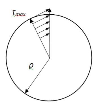 This equation shows that the shear stresses vary linearly with distance from the center of the bar to give the maximum shear stress on the outer surface. The variation of the shear stress acting on the cross-section is illustrated in Figure 3.