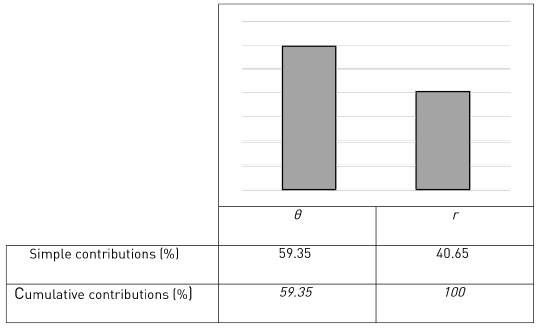 The effect of each individual factor, as well as their interactions, can be analyzed from the Pareto chart illustrated in Figure 6. In this chart, the length of each bar is proportional to the absolute value of its estimated effect or associated contribution. According to the performed Pareto chart, the angle of twist was found to be the major factor affecting microhardness values (59.35 %), while the distance from the center was found to be the second-ranking factor (40.65 %).