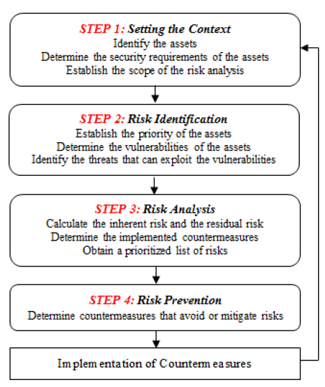 Analysis of risk management and prevention methodologies: A qualitative approach was used to analyze nine risk management and prevention methodologies found in the literature: OCTAVE [4], CORAS [5], Risk Management Methodology according to Australian Standard [6], NTC-ISO/IEC 27005: Risk Management in Information Security [7], CRAMM [8], MAGERIT [9], Risk Management Guide for Information Technology Systems [10], Methodology for the Diagnosis, Prevention and Control of Corruption in Public Safety Programs according to IDB [11] and Guide to Malware Incident Prevention and Handling [12]. These methodologies were compared to establish similarities and differences among them in [13].