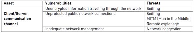 Table 3 shows the vulnerabilities of each asset and the threats that can exploit them.