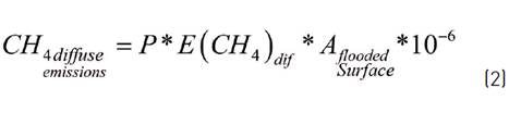 CH4diffuse emissions = total diffuse emissions of CH4 from flooded areas, Gg CH4 year-1.