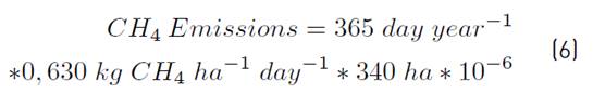 In this case, the best scenario in terms of error is ±10% in the flooded area values, and 1 order of magnitude variation in the emission factors. The worst-case scenario, in terms of error, is ±25% in the flooded area values, and 1 order of magnitude variation in the emission factors.