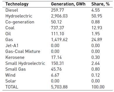 The amount of energy generated achieves 5,703.88 GWh per month in the country. The hydroelectric has the biggest share of the energy mix in the country, even during the year 2015 when the strongest ENSO phenomenon was reported, which affects the generation performance due to the low level in water reservoirs. Nevertheless, the national energy demand increases from 3.9 to 4.4 % by year [2], showing the situation above as an important risk for the national energetic security in the country [13].