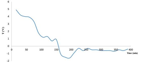 Figure 10 presents the simulation results during the cooling and subsequent freezing phases in the ice bank. Temperature measurements were taken during the operation (ten hours), where the temperature stabilization is observed after four hours and nine minutes until reaching a temperature of -0.1 degrees Celsius.