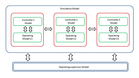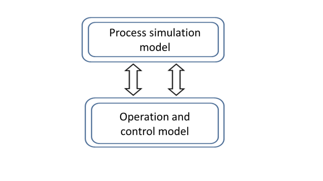 To address the Secondary Cooling System modelling, a Bottom-Up approach was employed [13]. A global system representation is constructed, and via successive refinements, it defines the components and their interactions and establishes the system behaviour. The model consists of a model that enables the process simulation and an operation and control model, as shown in Figure 5.