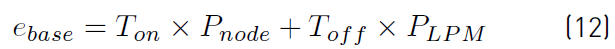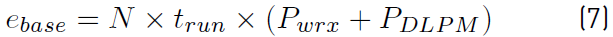 The first term covers the base-energy consumption that is always present in DLPM. ebase is the power consumed in the DLPM by each node over time and its WuRx, during the total runtime of the M2WSNs, and it is defined as shown in equation (7).