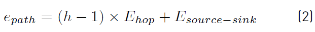 The first term gives the power consumption of the h − 1 intermediate SNs on the path, while the second term complements the power consumption of the source and sink, Esource−sink in equation (3), which it is detailed below: