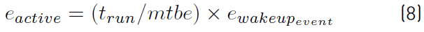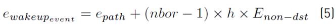 Therefore, the total energy consumed by each event to deliver it towards the sink (only if a wake-up event occurs), ewakeupevent , considering equations (2) and (4), is given by the equation (5).