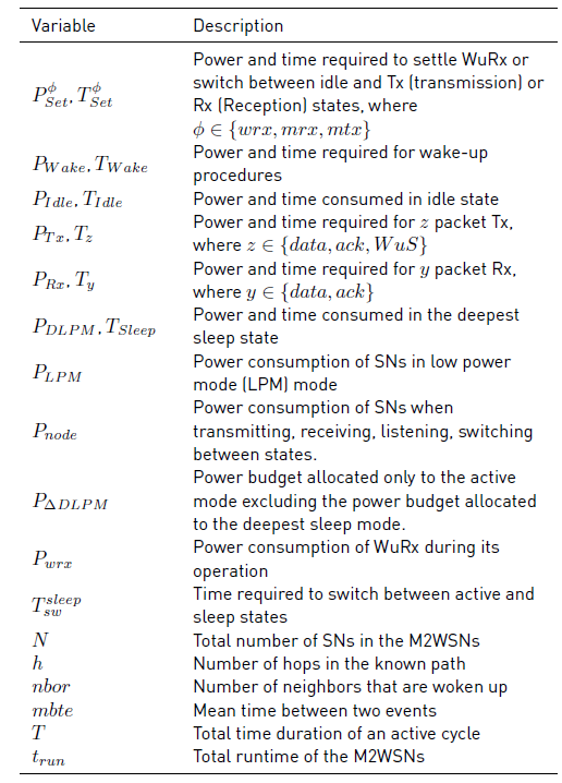 In our analytic model and to compare the benefits of a WuRx and a LDC configuration for M2WSNs, some underlying assumptions are made: