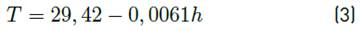 where T is the average annual temperature in degrees Celsius and h is the elevation above the mean sea level in meters.