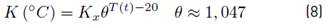 where K(ºC) [T-1] represents the correction of the degradation rate of the metal due to the water temperature and ( is the Arrhenius constant, in this case taken as 1.047, and T(t) is the water temperature in degrees Celsius at time [°C].