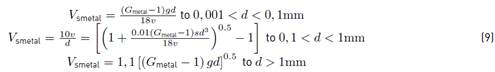 where Gmetal [dimensionless] corresponds to the specific gravity of the metal, ( [LT-1] to the kinematic viscosity, g is the acceleration of gravity (9.8067 m/s2) [LT-2] and d (mm) is the diameter [L] of the sediment particle.
