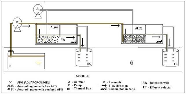 Aeration was promoted by air pumps to maintain the support media in movement and the concentration of dissolved oxygen above 4.0 mg L-1, this parameter was monitored, once a week, by a Lutron DO-5519 oximeter. The APG (AQUAPOROUSGEL®) spongy support used during biological treatment was gently provided by Nisshinbo Chemical Inc.