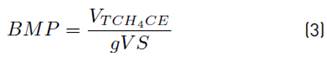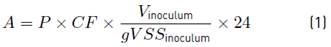 SMA was calculated with the maximum slope of the accumulated methane production curve (mL/d), divided by the amount of VSS introduced in the bottle using the proper conversion factor to report it as gCODCH4/gVSS·d.
