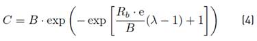 Where C is the cumulative methane production (ml) obtained at time t (d), B is the methane production potential (ml), Rb is the maximum methane production rate (mL·d-1), λ = lag phase time (d) and e is a mathematical constant (2.718).