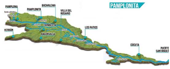 The project contemplated the development in the zones of greater influence in the municipality of the department of Norte de Santander, such as the Pamplonita and Zulia river basin. Figure 5 [9] shows the basin of the Zulia river where the municipalities of Arboledas, Gramalote, Puerto Santander, El Zulia, Salazar, San Cayetano, Durania, Santiago, Salazar, and Villa del Rosario. Likewise, it is in the middle part of the department of Norte de Santander, on the eastern slope of the Colombian eastern mountain range. The basin is located between the North flat coordinate: 1’290.000 and 1`430.000 and East: 1`118.000 and 1`190.000, originating in the National Astronomical Observatory and part of the basin in the lower part continue to flow over Venezuelan territory.