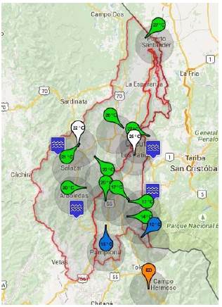 In recent years, the recurrence and the intensity of climatic variability phenomena such as ENSO, El Niño and La Niña, has caused critical impacts that affect human lives and economic dynamics in the region. The evidence reveals a deficit of hydro-climatic information which affects the generation of early warnings to mitigate impacts at short, medium- and long-term difficulties. This condition influences the reaction the authorities can have to face theses eventualities taking into account disaster risk management, in particular support measures and decisions that must taken by departmental and municipal disaster risk management councils [1]. In the case of the North Santander Department, a lack of a hydro-climatic network was reflected, as well as, the difficulties to obtain updated information that serves as tools for the prevention of landslides and floods. It is worth mentioning that these phenomena have aggravated the environmental and socioeconomic crisis in the Department. To understand this situation some concepts presented below must be explained.