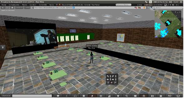 LSL (Linden Scripting Language) is a language in which the OpenSimulator scripts are developed. In Figure 3, it is shown how these scripts allow a greater interaction between avatars and virtual world to improve the experience and have access to services such as a videoconference in a given topic, which simulates a totally virtual class. The avatars are directed to a specific site within the virtual world where the teacher is virtual and they take the class.
