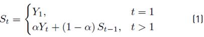 where, Yt is the input variable (i.e., in this case the sequence number gaps) and α is a constant between [0; 1] that determines the influence of recent and old samples. If α is close to 1 then the resulting average is almost determined exclusively by recent samples; and, if α is close to 0 then the old samples are given more weight. Once the nodes know their neighborhood, the tree construction phase begins.