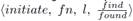 If the level l′ is greater than l, then q sets the state of the edge qp to branch, and sends an initiate message. Since both fragments are about to join at a different level, the higher-level fragment imposes its name and level over the lower-level fragment. In other words, the lower-level fragment copies the name and level of the higher-level fragment. Thus, the new fragment is called fn′ and has level l′. So, the initiate message is . The last parameter is the state of the node q, which can be either find or found, and is represented as