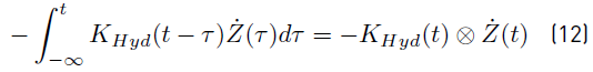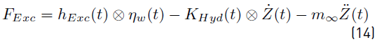 Where hExc is the excitation force impulse response function, which is of non-causal nature [10, 29]. The non-causality implies that the movement of the buoy is not due to the wave that is just passing underneath it, it may be an effect of the wave that is 30 m away the buoy and still has not reached the buoy or a vessel to thousands of kilometers [32]. τ is the wave period. nw is the water free surface elevation that is a function of the period (τ). Furthermore, hExc is a function of t - τ; this indicates that the system is time-invariant linear system. This fact means that the system has the same characteristics now as in the past and in the future [25].