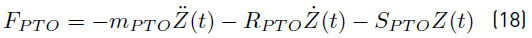 where RPTO and SPTO are the damping mechanical coefficient and the stiffness coefficient, respectively, associated with the PTO system [5, 25]. As observed in Figure 1, for the device proposed here, the transformation system of wave energy into electricity does not have connection with the buoy; therefore, this term is negligible in the dynamic analysis of the system presented in this work.
