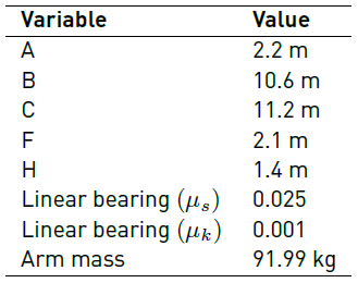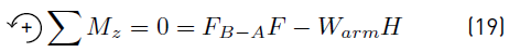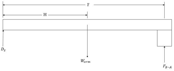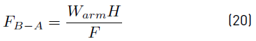 Finally, FB-A in Equation 1 is the arm buoy force. This force is due to the effect that exerts the arm weight (Warm ) on the buoy. In order to know the value of this parameter, a static analysis is conducted from Figure 3. The values of the distances F and H, as well as the arm weight, are compiled in Table 1. From the static equilibrium, applying the torque summation to D point, Equation (19) is obtained.