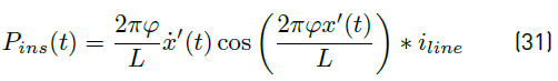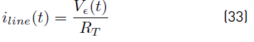 where φ is the magnetic flux, which is equal to Nφi , being φi the magnetic flux per magnets and N the number of coils of the stator. L is the distance between poles of the same polarity. These values are given in Table 2. The power depends on the current (iline ) and the amount of resistance present in the system. A winding of an electric generator can be represented as a RL equivalent circuit. If a RL circuit is considered as a system with input and output, the input is the voltage drop (Vϵ(t)) across the circuit and the output is the current (iline (t)) through the circuit. Both parameters are variable in time. Vϵ(t) across the circuit can be expressed as Equation (32).