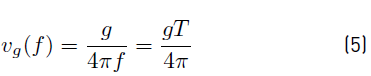 where vg (f) is the group velocity, which is expressed as Equation (5) [25].