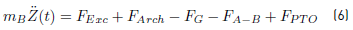 where mB is the mass of the buoy including all the internal components; FG is the gravity force equal to mBg; g is the gravity; Z is the vertical displacements of the buoy and , the buoy acceleration at z-axis. Additionally, the variable FExc in Equation (6) is the excitation wave force. This force corresponds to the effect of the wave acting on a body in the water. FExc can be separated into three components: (a) the Froude-Krylov force (FFK), (b) the diffraction force (FDiff), and (c) the radiation force (FRad). FFK, produced by the wave momentum, is imparted onto the submerged body. In turn, FDiff and FRad come from the disturbances to the surrounding fluid [1-3, 31]. Because of the contribution of the diffraction component has significantly smaller order of magnitude compared to the other two components, the effect of this force component can be considered as negligible for this analysis. This approximation generally is known as the Froude-Krylov approximation, which is quite useful taking into account that the calculus of diffraction component is quite complicated [3-6, 32]. Thus, FExc is determined by Equation (7).
