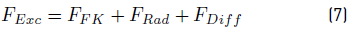 As mentioned above, the diffraction component is equal to zero in this analysis; then, the new expression for FExc is expressed by Equation (8).
