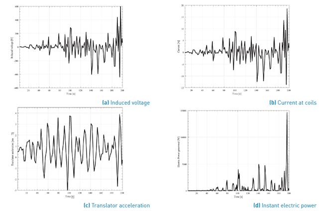 Comparing the behavior of the buoy of both analyses, it is evident that under a regular wave the system has a better performance that when an irregular wave interacts with the device. This can be explained because, under the action of a regular wave, the parameters have high values if compared with the irregular wave results.