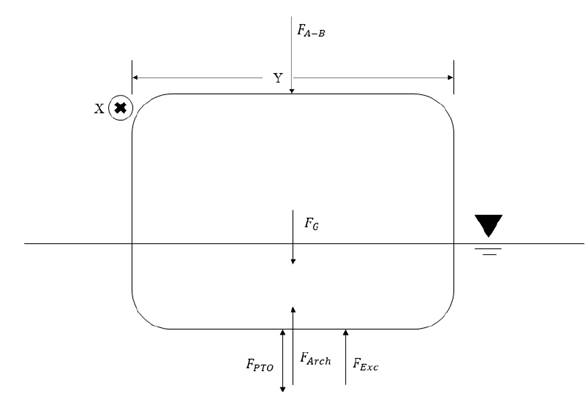 In Figure 2, the forces on the buoy can be observed; FExc changes in magnitude and direction with time as PTO force. Nevertheless, in the sketch, the direction of these forces have been defined, but it is only representative.
