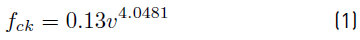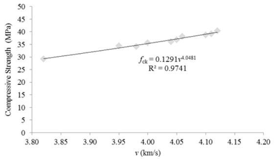 where fck is the compressive strength (MPa), while v is the ultrasonic pulse velocity (km/s).