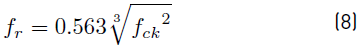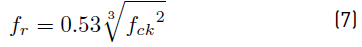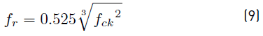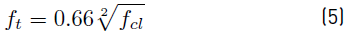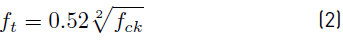 Authors in literature [17] proposed Equation (2) (with 10% error), which relates the compressive strength and split tensile strength of polypropylene fibre-reinforced OPS concrete. Authors in literature [19] predicted split tensile strength based on compressive strength using Equation (3) with 8% error.