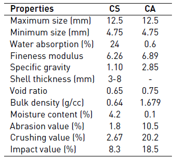 CS: Coconut shell; CA: crushed stone coarse aggregate