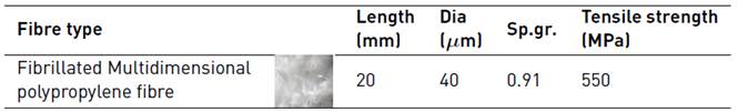 Fibrillated multidimensional polypropylene fibres were used in this study. The properties of these fibres are listed in Table 3.