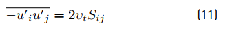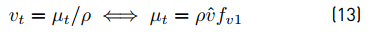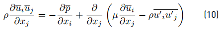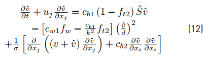 The term is the Reynolds stress tensor and represents correlations between fluctuating velocities. In order to model it, the Spalart Allmaras-fv3 (S-A fv3) turbulence model is selected due to literature recommendations [16] and a turbulence model validation described in section 3 . The model is described as follows (Equation (11) - (21)]: