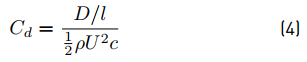 These parameters are defined through their dimensionless coefficients: Lift coefficient, cl , and drag coefficient, cd, defined in Equation (3) and (4) respectively.